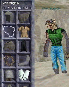 - Klok Mugruk says, 'Welcome to my shop, sss. Only the finessst I have. I make for you jussst as I make for the emperor's harem. Many [bristle silk] garmentsss do they need. Ssss.. Lucky man, the emperor isss.'