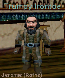 Trumpy Irontoe may be found inside the Fish's Ale at (loc -309.10, -260.72) but he also wanders to and from the Docks at (loc -161, 119). He stops at the end of Docks for a moment and also stops once on his way there and back, near the archway at (loc -224, -132)