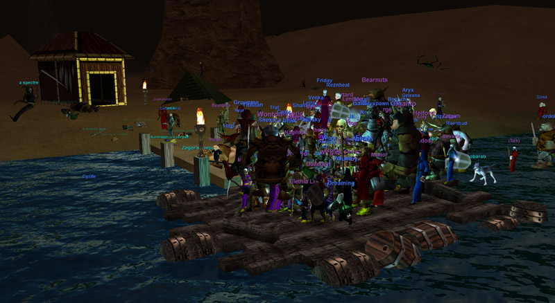 See this thread for Rogean's behind the scenes. The launch of Kunark on Project 1999 was preceded by an event the night of Friday, March 25, 2011. It involved a scavenger hunt to collect the heads of various races for messengers of the Iksar nation, then a short battle as each of the messengers returned to their boats. There were serverwide messages throughout the evening keeping everyone up to date on the progression of the live quest, as well as when Kunark does open. The boats and port spells to Kunark were then unlocked. The opening of the zones will coincide with the level cap being raised to 60 as well as the ability to create Iksars. This will all happen without a server patch.