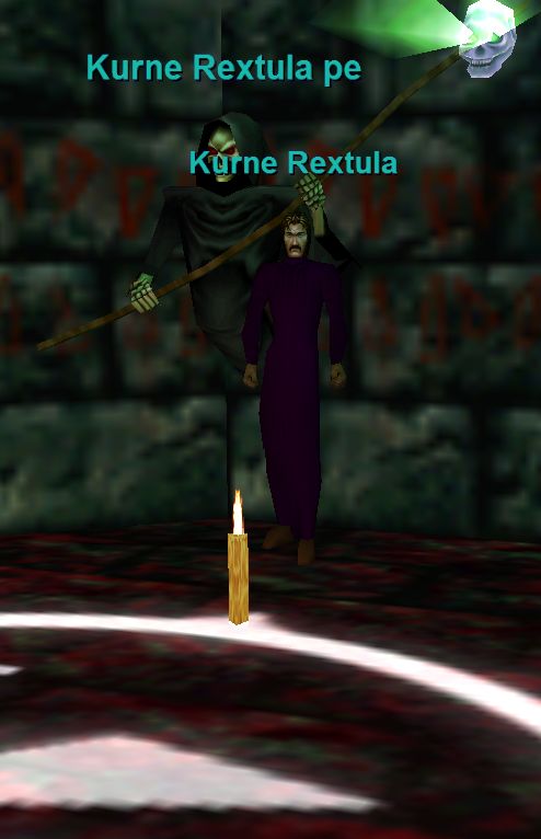 - Kurne Rextula says 'Incredible!! You have slain one of the greatest warriors in Qeynos!! He must have been full of grog. No doubt he drank most of his skill away. Now I shall cast a spell and strip the flesh from his skull and.. Presto!! Take this skull to Lord Grimrot somewhere in the Plains of Karana. He will be in the center of a field of skeletons. If he is not there, wait for his return. He must return eventually.'