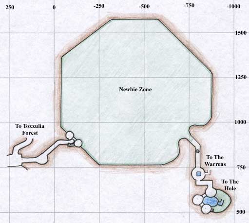 The exit to The Warrens can be found near the newbie area, on the left before The Hole.